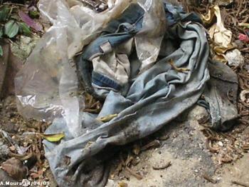 detritos fecais e os restos de comida espalhados
